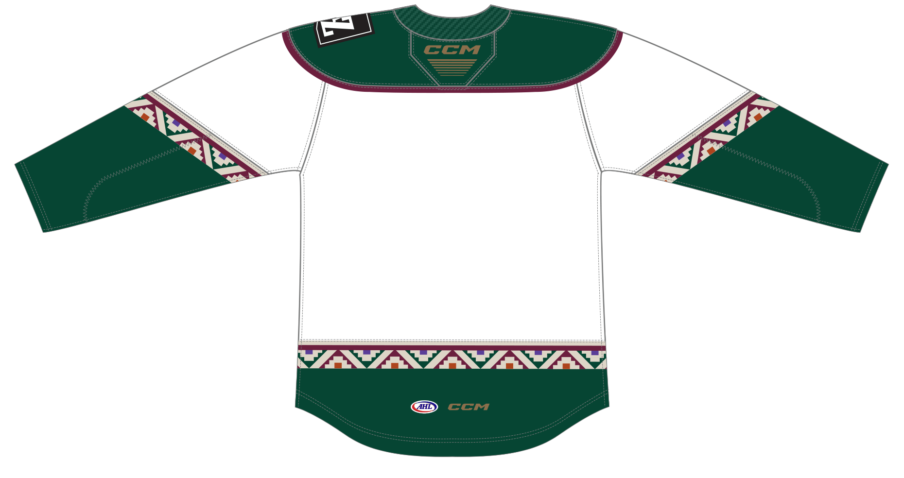 The CCM Quicklite Tucson Roadrunners Premier White jersey is made of high-quality polyester two-way stretch pique fabric and has solid mesh inserts for ventilation. This officially licensed jersey is engineered to duplicate the on-ice team jersey. The front crest is embroidered just like the authentic jersey and the single layer screen printed tackle twill shoulder patches (where applicable) are applied directly to the jersey.