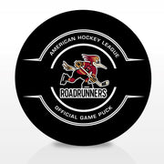 Collect your officially licensed Tucson Roadrunners game puck today. This center ice game puck is the exact puck as used during Roadrunners games and is produced by Inglasco.