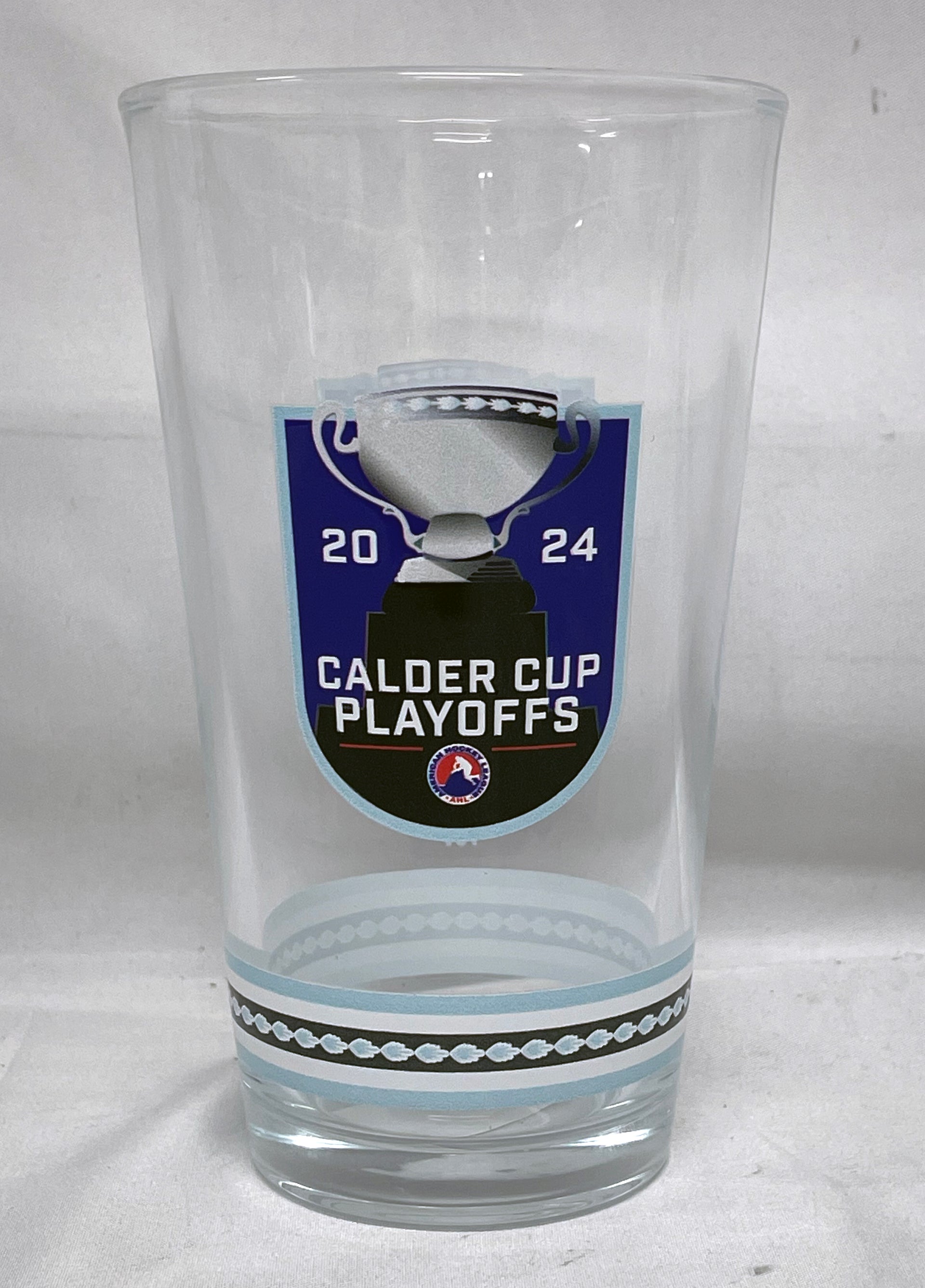 Officially licensed pint glass featuring the 2024 Calder Cup Playoffs logo.