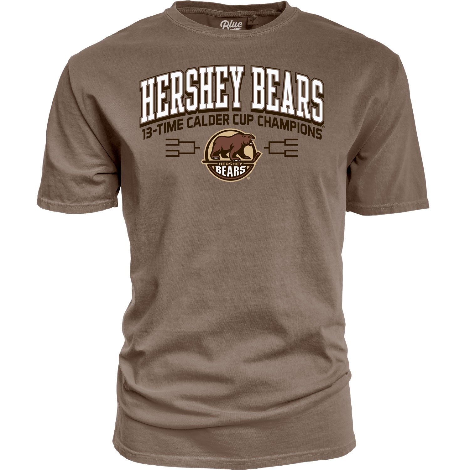 The Hershey Bears are Calder Cup Champions! Celebrate their championship with this 13-Time Calder Cup Champions t-shirt from Blue 84. Features a Calder Cup Champions graphic on the front and banners representing the 13 seasons the Bears have captured the AHL championship.