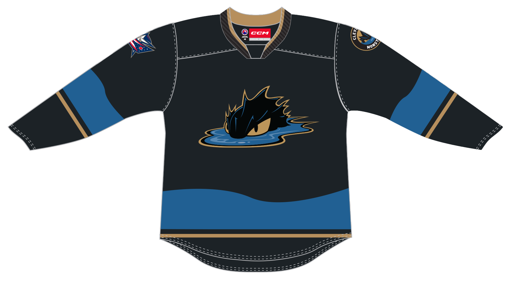 The CCM Quicklite Cleveland Monsters Premier Black Jersey is made of high-quality polyester two-way stretch pique fabric and has solid mesh inserts for ventilation. This officially licensed jersey is engineered to duplicate the on-ice team jersey. The front crest is embroidered just like the authentic jersey and the single layer screen printed tackle twill shoulder patches (where applicable) are applied directly to the jersey.