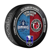 Collect all 2025 Calder Cup Playoffs dueling souvenir pucks including this puck from the Milwaukee Admirals vs Rockford IceHogs 2025 Central Division Semifinals.