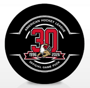 Collect your officially licensed 90th Anniversary Edition AHL game puck today. This center ice game puck produced by InglasCo is the exact puck as used during games during the 90th season (25-26).