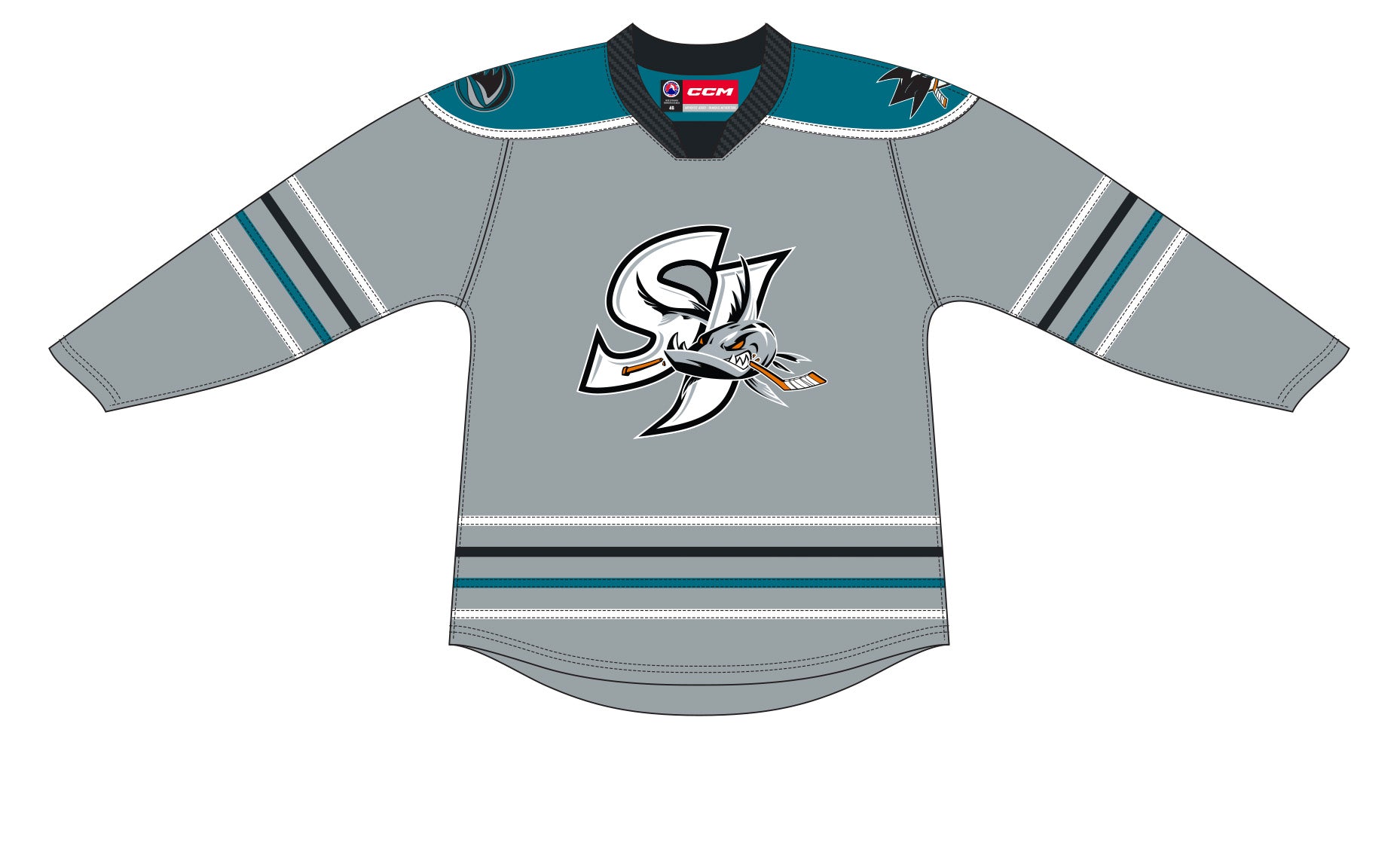 CCM Quicklite San Jose Barracuda Premier Gray Jersey