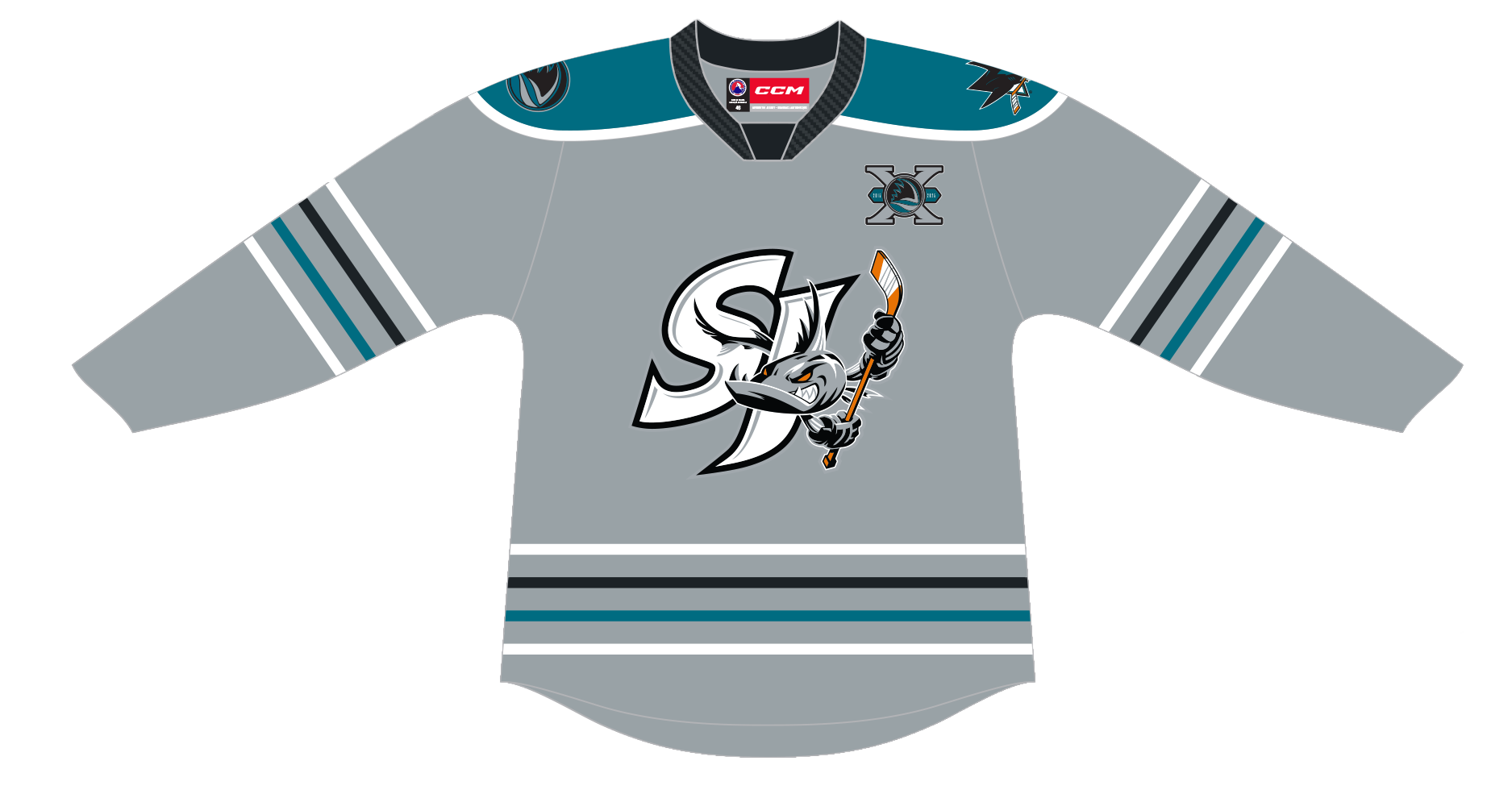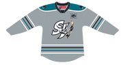 The CCM Quicklite San Jose Barracuda Premier third Jersey is made of high-quality polyester two-way stretch pique fabric and has solid mesh inserts for ventilation. This officially licensed jersey is engineered to duplicate the on-ice team jersey. The front crest is embroidered just like the authentic jersey and the single layer screen printed tackle twill shoulder patches (where applicable) are applied directly to the jersey. Features the team's 10th anniversary patch on the front chest.