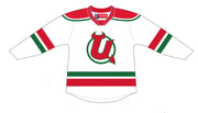 The CCM Quicklite Utica Comets Premier Third Jersey is made of high-quality polyester two-way stretch pique fabric and has solid mesh inserts for ventilation. This officially licensed jersey is engineered to duplicate the on-ice team jersey. The front crest is embroidered just like the authentic jersey and the single layer screen printed tackle twill shoulder patches (where applicable) are applied directly to the jersey.