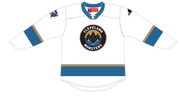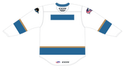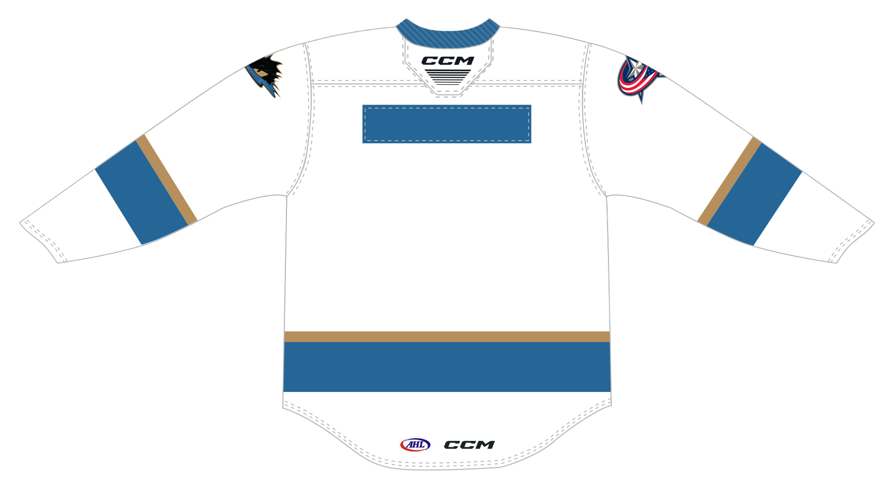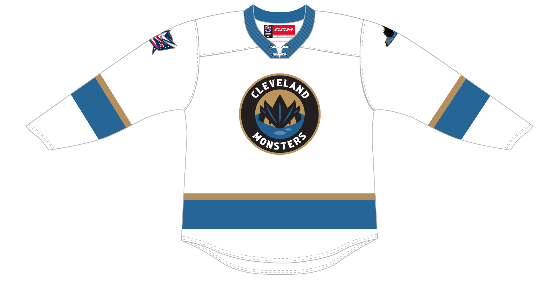 The CCM Quicklite Cleveland Monsters Premier White Jersey is made of high-quality polyester two-way stretch pique fabric and has solid mesh inserts for ventilation. This officially licensed jersey is engineered to duplicate the on-ice team jersey. The front crest is embroidered just like the authentic jersey and the single layer screen printed tackle twill shoulder patches (where applicable) are applied directly to the jersey.